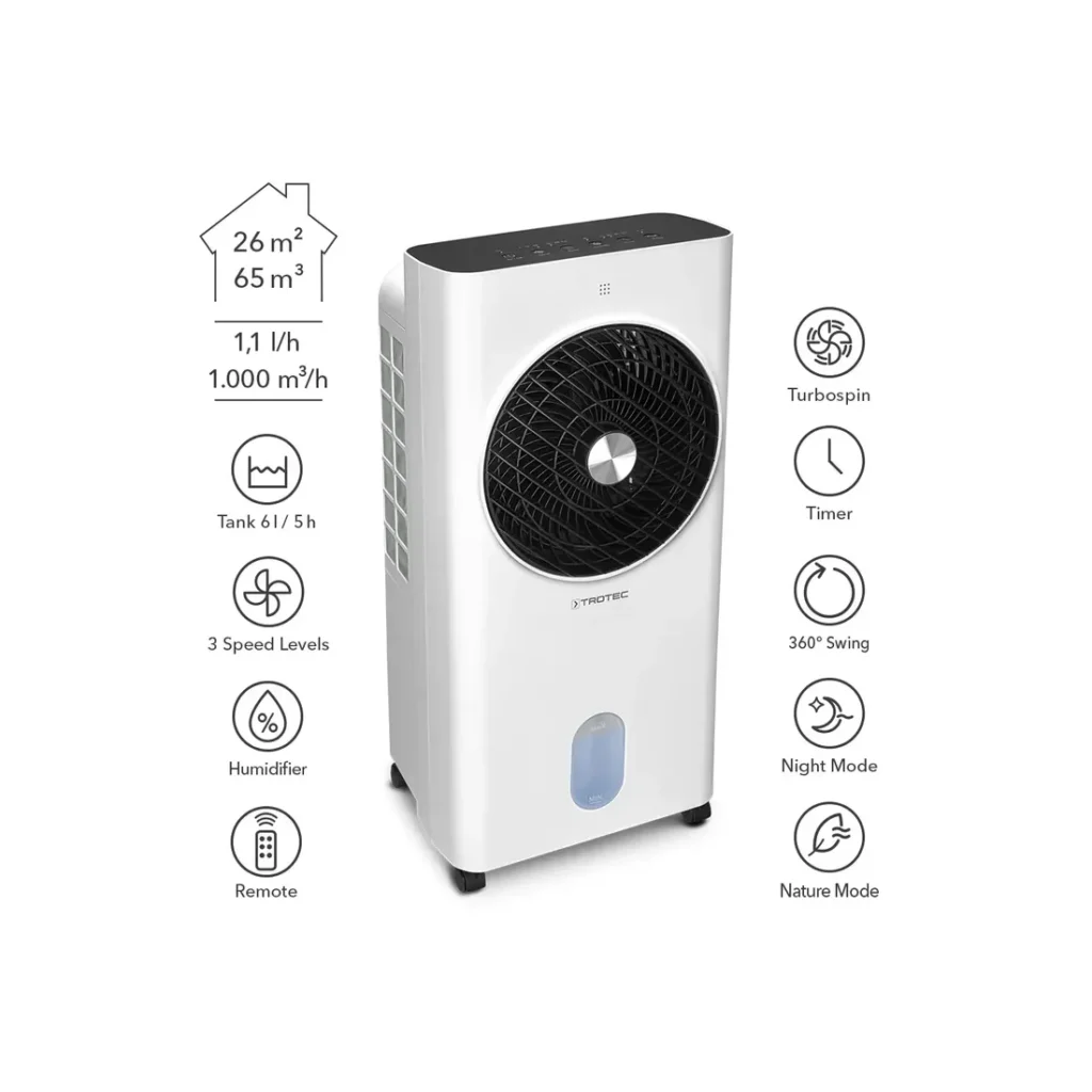 3 brzine ventilatora i postavke automatskog načina rada omogućuju odobrani rad i udobnost. Uz izlaznu vrijednost od 200 ml/h, efiskano ovlažava bilo koju prostoriju veličine do 32 m2.