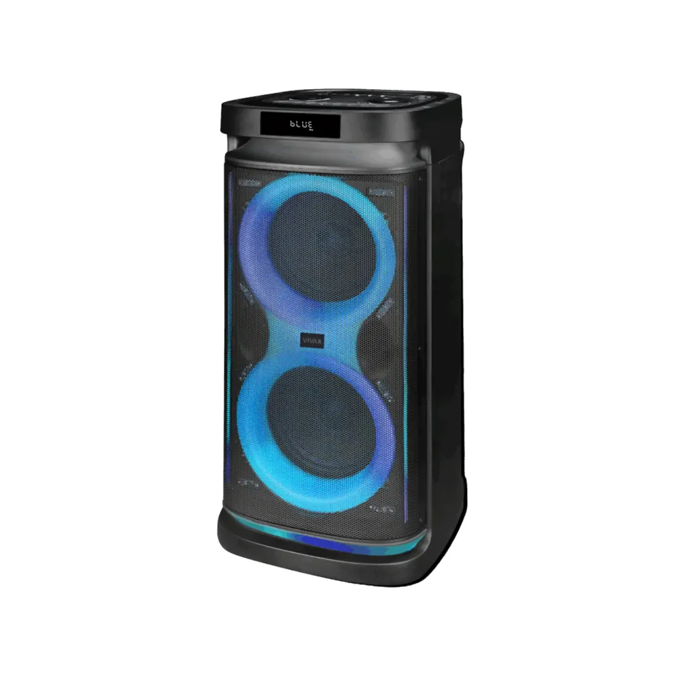 VIVAX VOX BT/karaoke zvučnik BS-820 USB plejer; MP3; 1x Bežičnimikrofoni sa baterijama + 1x Daljinski upravljač sa baterijama, 80W RMSaudio izlaz (2x 8″ bas zvučnik + 1x 2″ visokotonac), 7Ah punjivabaterija;